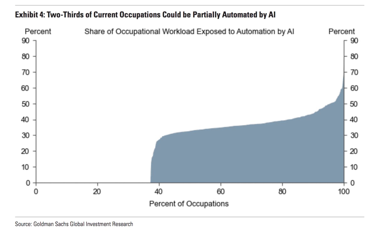 They estimate that AI (in its current form) will eventually replace two-thirds of occupations - an assumption that doesn't even factor in the exponential growth of AI capabilities.